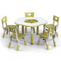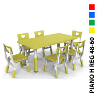 Il tavolo quadrato colour presenta una struttura con ripiano in bilaminato dai bordi in gomma arrotondati, le gambe in polipropilene sono dotate di tappi inferiori che con una semplice sostituzione variano l'altezza del tavolo da 46 a 52 cm.