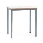 Banco individuale con gambe in metallo verniciato. Piano in legno aggregato con spessore mm 18. Bordatura del piano in gomma con spigoli arrotondati per la sicurezza dei bambini.