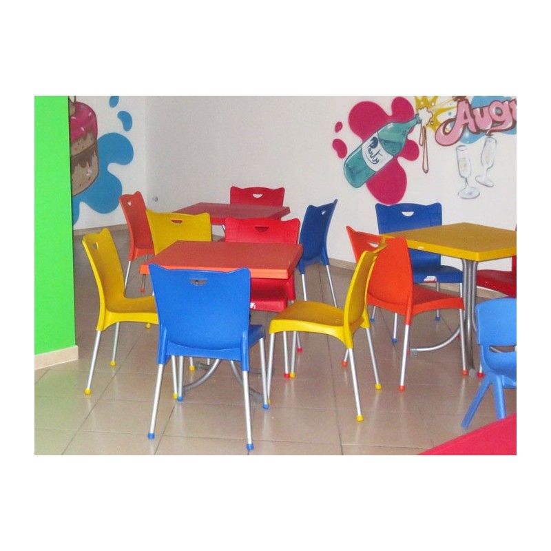 Il tavolo in plastica con piedi centrali in alluminio unisce resistenza, design e versatilità. Colorato ed esteticamente accattivante, è pensato per arredare con stile ambienti come bar, ristoranti, sale feste e ludoteche. Grazie alla struttura solida e ai materiali durevoli, può essere utilizzato sia in ambienti interni che esterni.