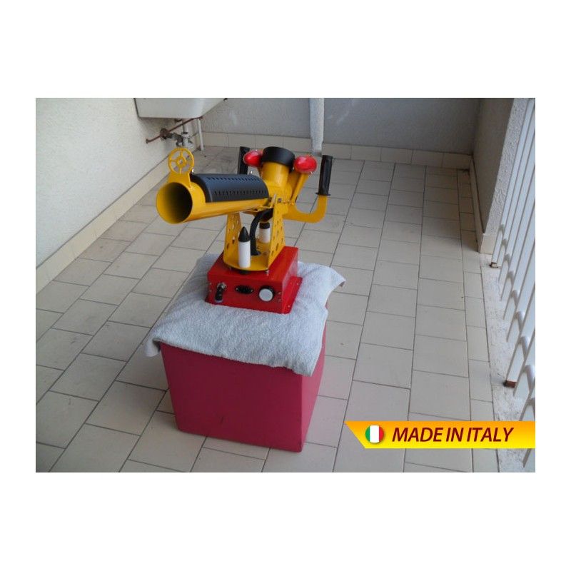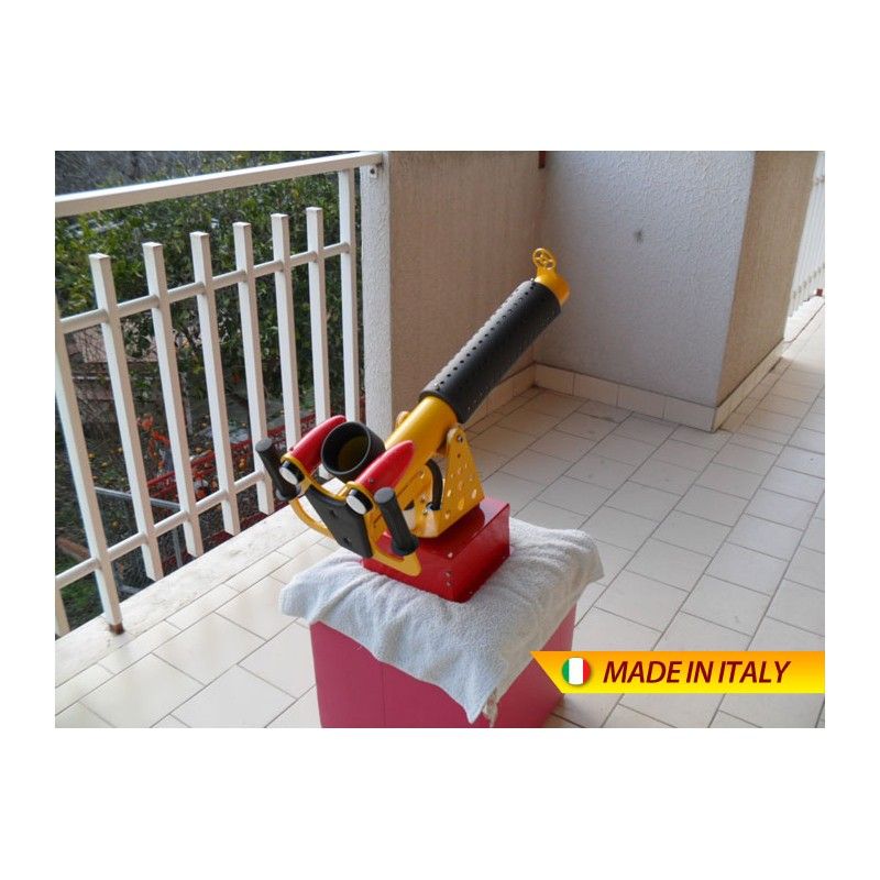 Cannoncino da banco ad aria compressa per sparapalline o strutture da intrattenimento simili. Prodotto italiano certificato per un gioco sicuro e divertente.